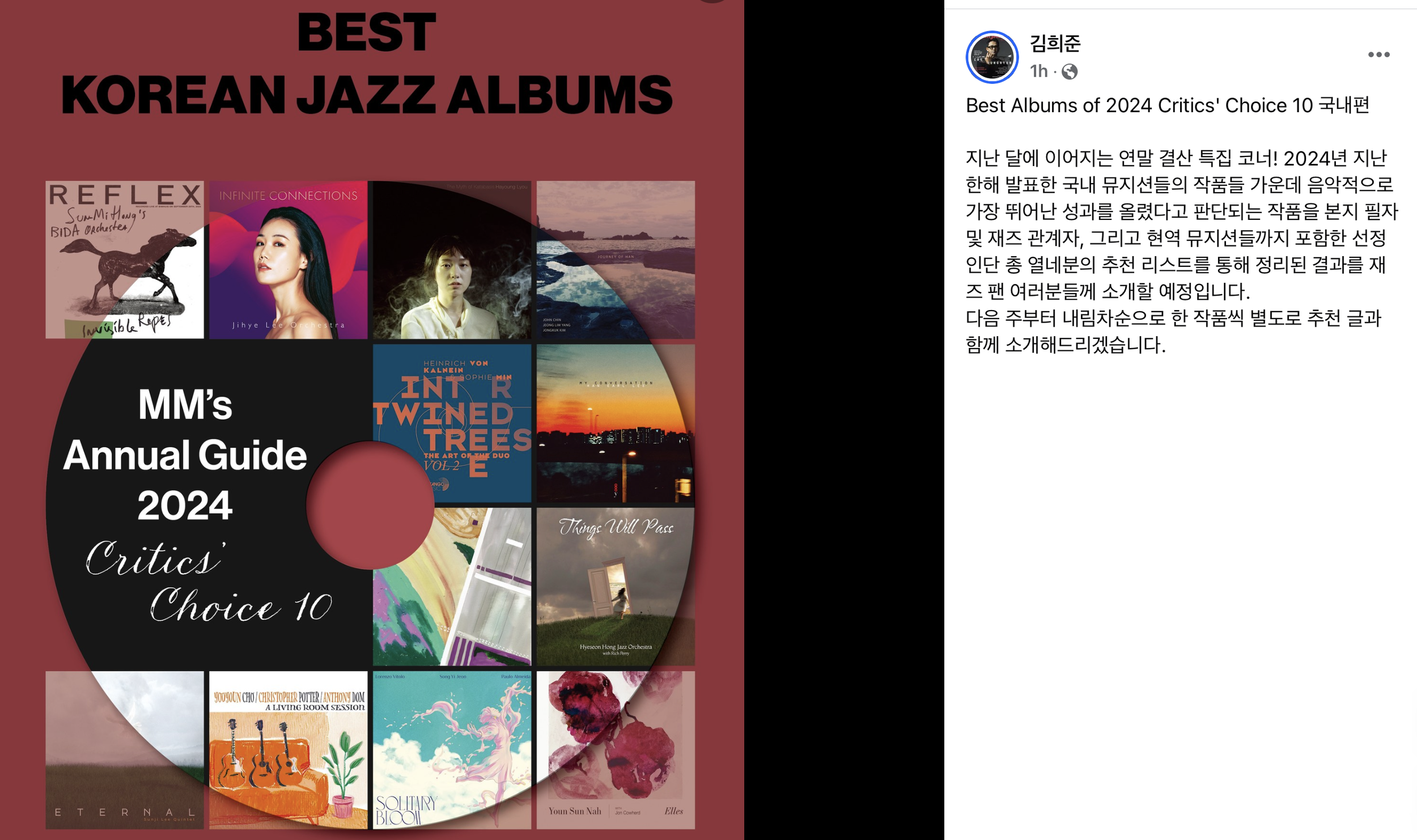 Throughout his 15-year journey in the jazz field, Hyojin has dedicated himself to documenting, promoting, and enriching the Korean jazz scene. He publishes a semi-monthly newsletter featuring jazz news and recommended music, along with occasional interviews and personal insights. Based in Tongyeong, he continues to bridge the gap between jazz musicians and audiences, making the genre more accessible to Korean listeners while highlighting local talent.